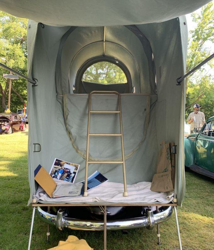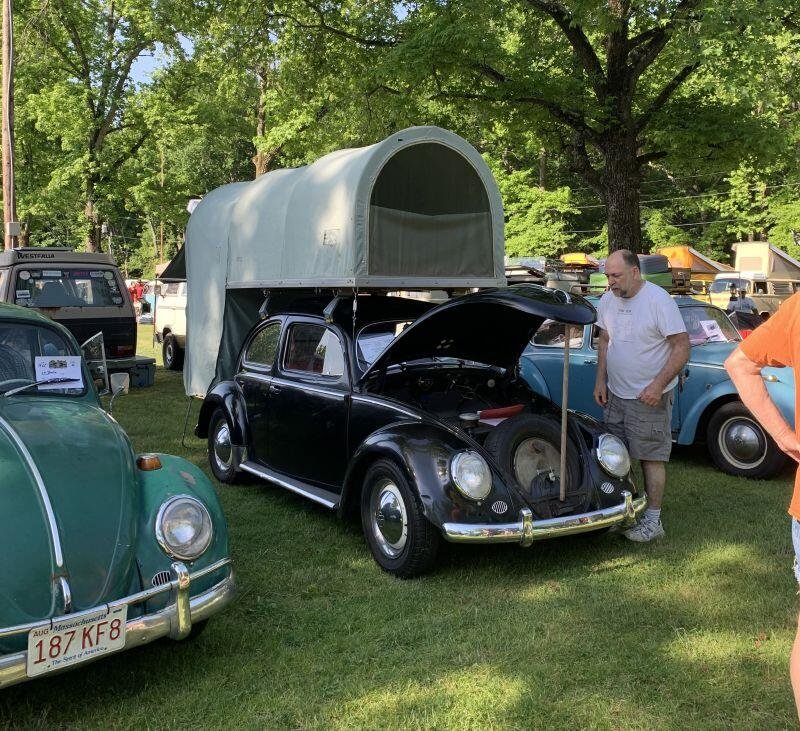 The bug below was also a sound system, playing tunes to set a festive tone into the evening. And in the morning, it bellowed a bugle call to wake us up (vehicles had to clear out for the start of the car show).